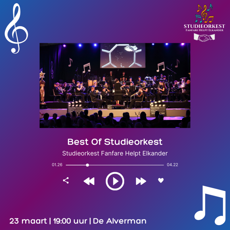 Op 23 maart vindt om 19:00 uur het concert 'Best Of Studieorkest' plaats in de Alverman. Tijdens dit concert komen alle highlights en hits van de afgelopen jaren van het studieorkest voorbij. Ook zullen de blokfluiters een optreden geven tijdens dit concert. Het concert staat in het teken van het afsluiten van de periode studieorkest. Dit is namelijk het laatste seizoen voor het studieorkest. Naast dit concert staat er nog één allerlaatste optreden gepland tijdens het Offers Treffe op 15 juni. Kom dus zeker naar het concert op 23 maart en/of het optreden op 15 juni om nog één laatste keer te kijken en luisteren naar het studieorkest.